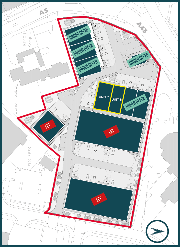 Towcester Trade Park is prominently located on the junction of the A43 and A5 linking the M1 and M40 motorways. The site is 0.6 miles to the north of Towcester Town Centre, with the immediate location benefiting from some established existing retail and industrial use with occupiers including; Screwfix, Porsche, Sytner Group, Jardine VW, Towcester Tyre Services, Aldi, B&M and Tesco.